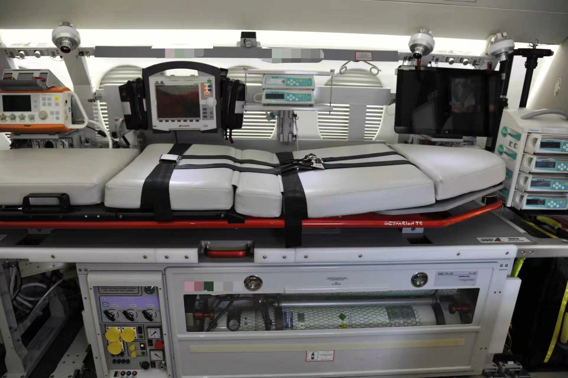 - Mobile ICU and ECMO Setup with isolation chamber: Advanced medical systems for monitoring and supporting vital functions during the flight.